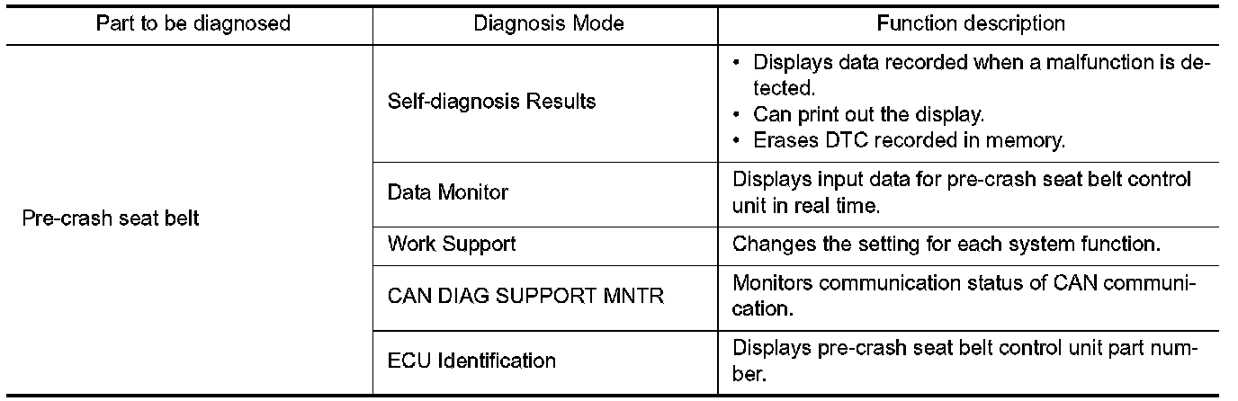 DIAGNOSIS SYSTEM (PRE-CRASH SEAT BELT)