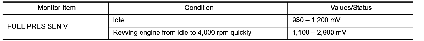 Check "FUEL PRES SEN V" in "DATA MONITOR" mode with CONSULT-III.
