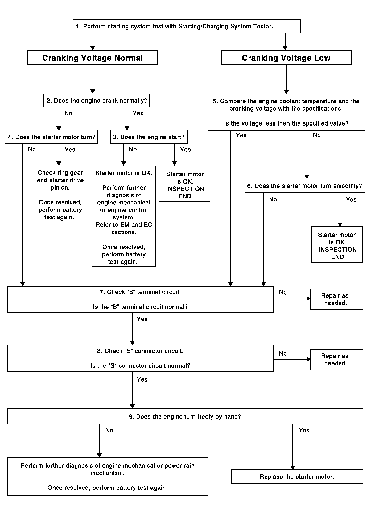 YES - Starter motor is OK. INSPECTION END