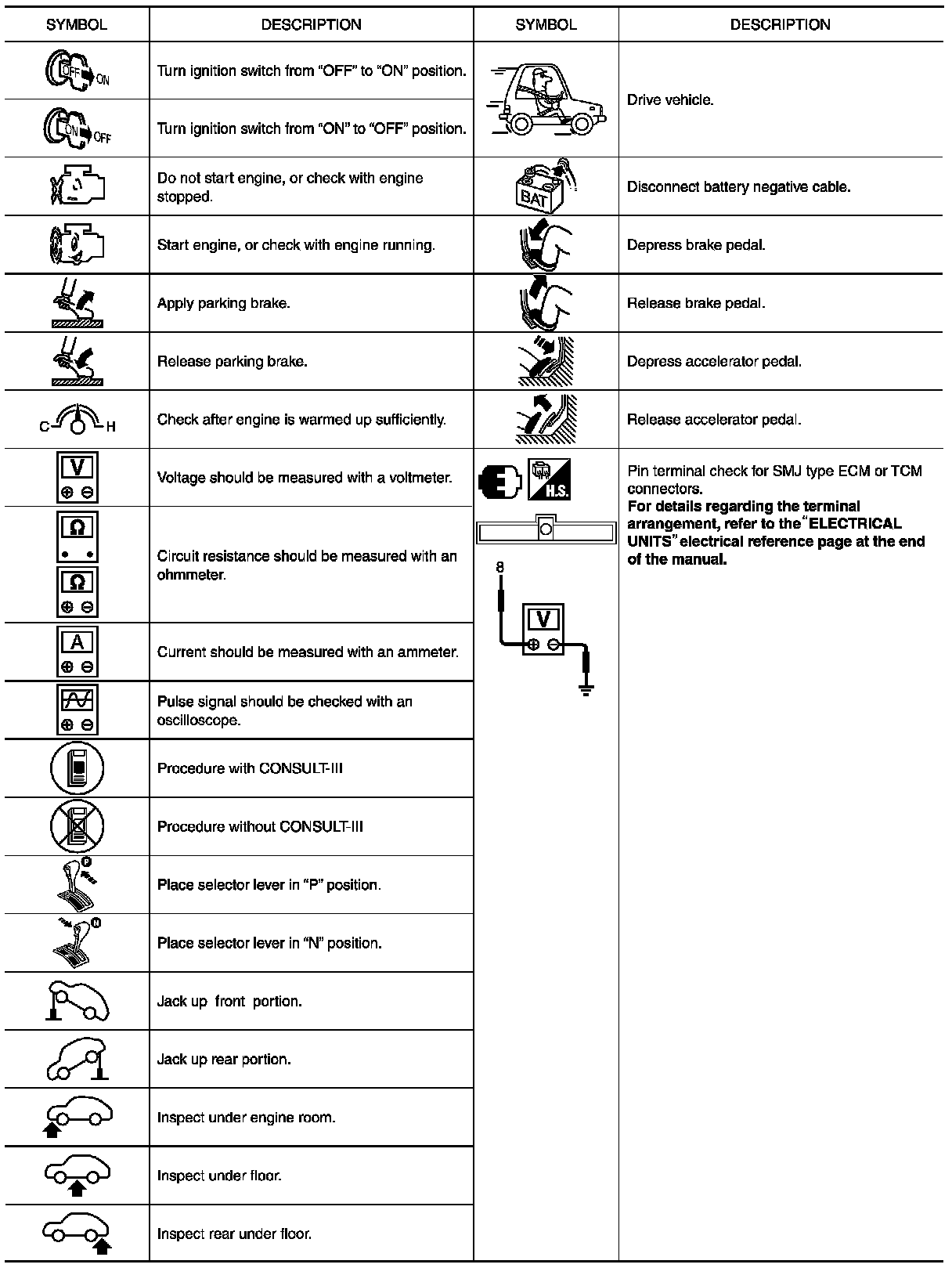Key To Symbols Signifying Measurements Or Procedures