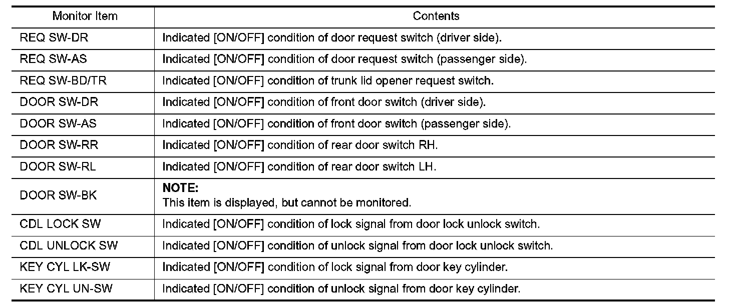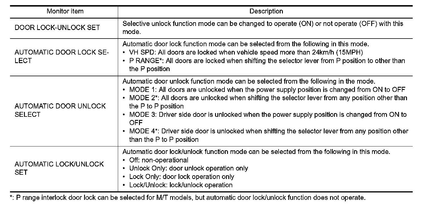 DOOR LOCK : CONSULT Function (