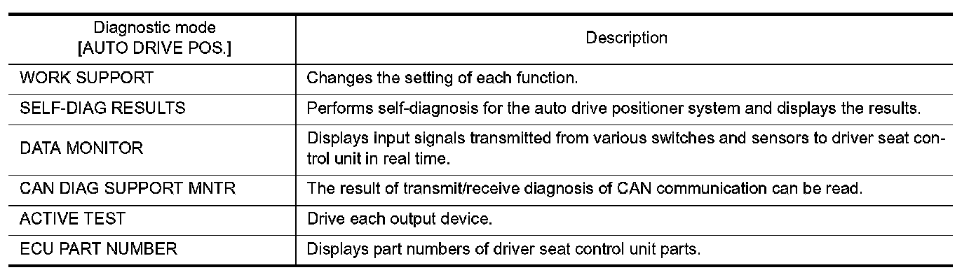 The auto drive positioner system can be checked and diagnosed for component operation with CONSULT.