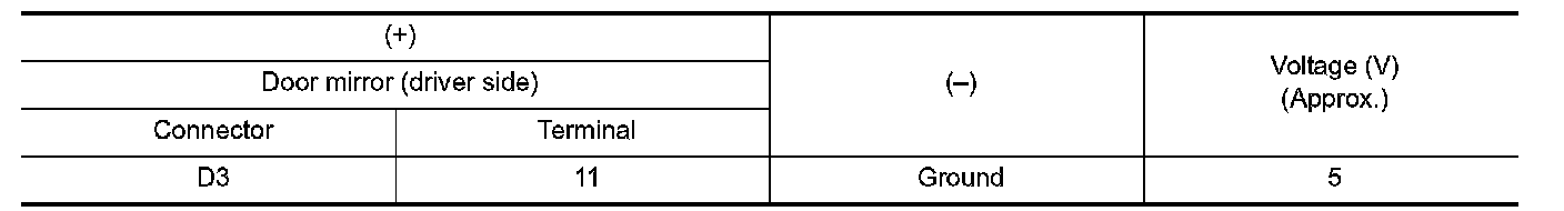 3.Check voltage between door mirror (driver side) harness connector and ground.