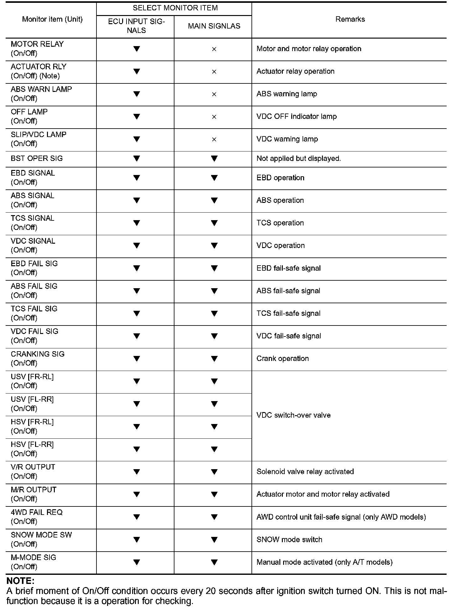 A brief moment of On/Off condition occurs every 20 seconds after ignition switch turned ON. This is not malfunction because it is a operation for checking.