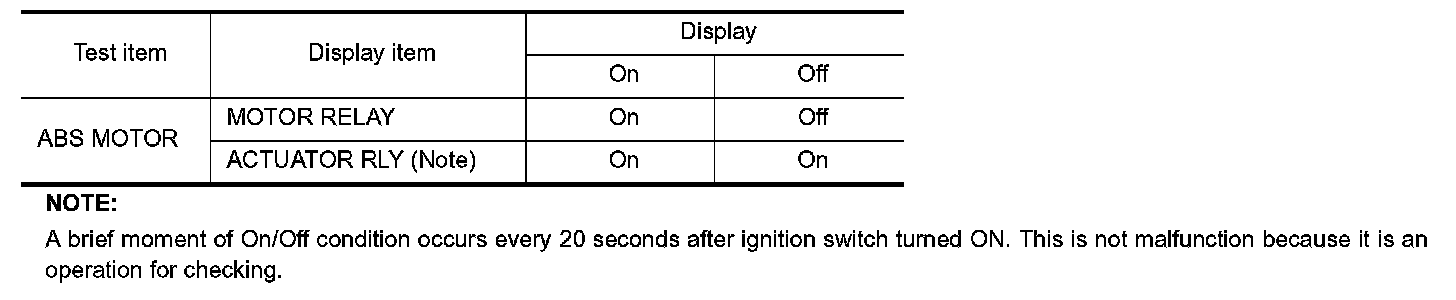 - When active test is performed while depressing the pedal, the pedal depression amount will change. This is normal. (Only solenoid valve and ABS motor.)