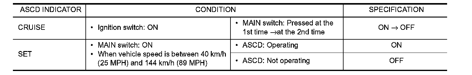 Check ASCD indicator under the following conditions.