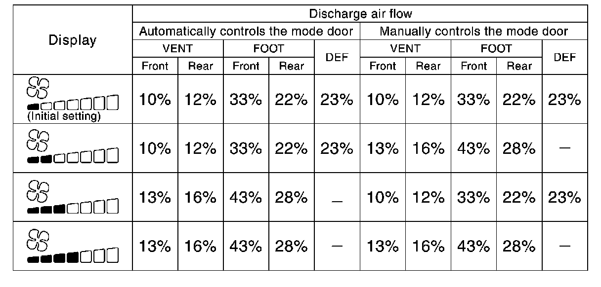 When battery cable is disconnected or battery voltage is below 10 V, trimmer operation is canceled. Air distribution ratio set becomes that of initial condition.