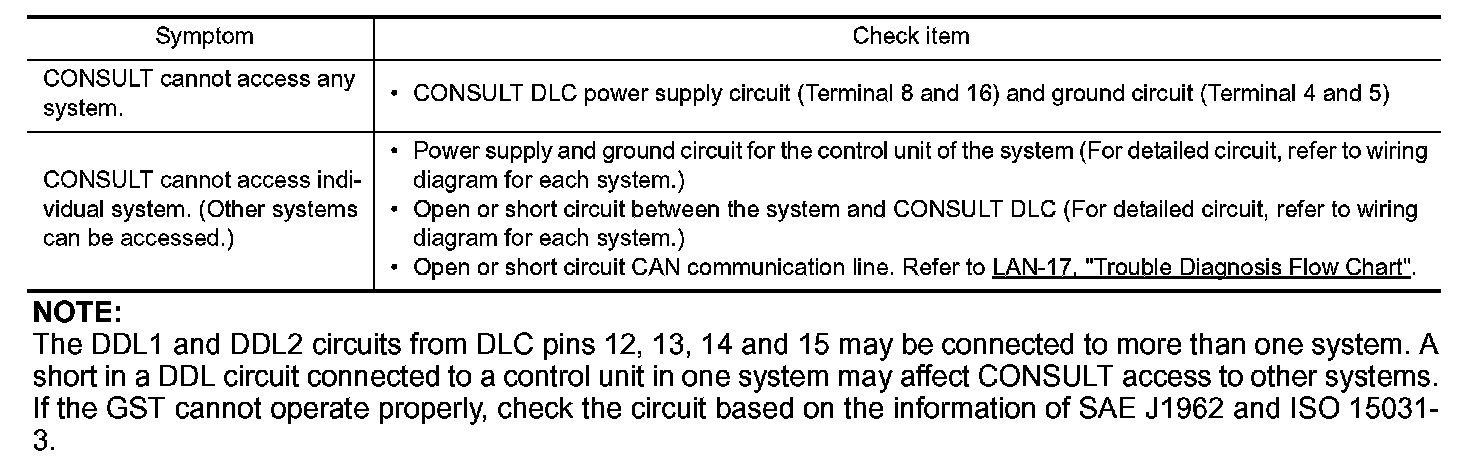 short in a DDL circuit connected to a control unit in one system may affect CONSULT access to other systems.
