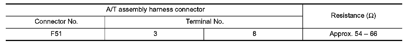 2.Check the resistance between the A/T assembly harness connector terminals.