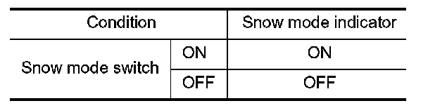 2.Check the snow mode indicator in the snow mode switch under the following condition.