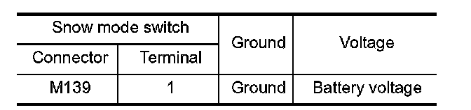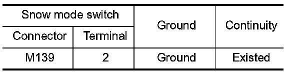 3.Check the continuity between snow mode switch terminals under the following conditions.
