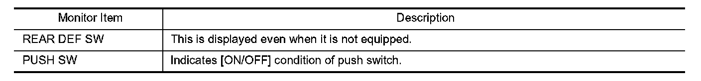 REAR WINDOW DEFOGGER : CONSULT Function (