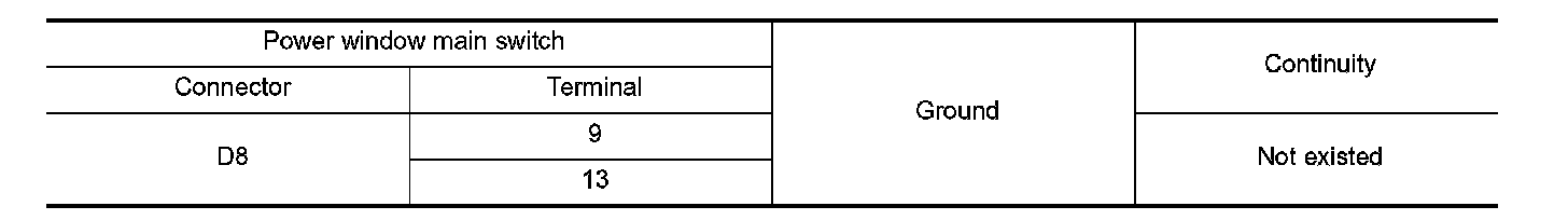 4.Check continuity between power window main switch harness connector and ground.