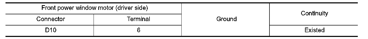 2.Check continuity between front power window motor (driver side) harness connector and ground.