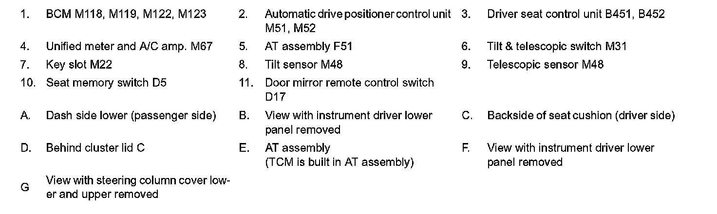 ENTRY ASSIST FUNCTION : Component Parts Location