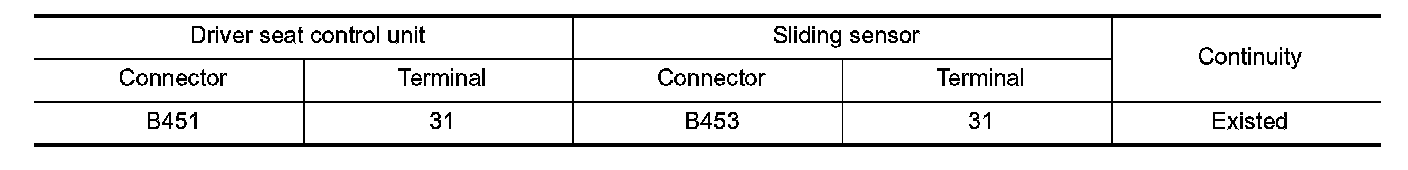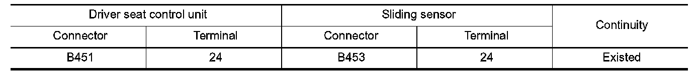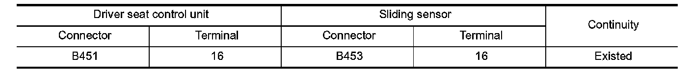 3.Check continuity between driver seat control unit harness connector and sliding sensor harness connector.