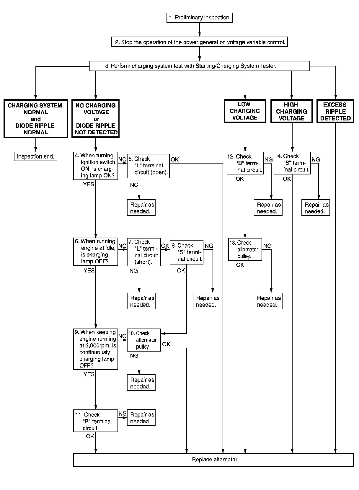 Perform the preliminary inspection. Charging System Preliminary Inspection.