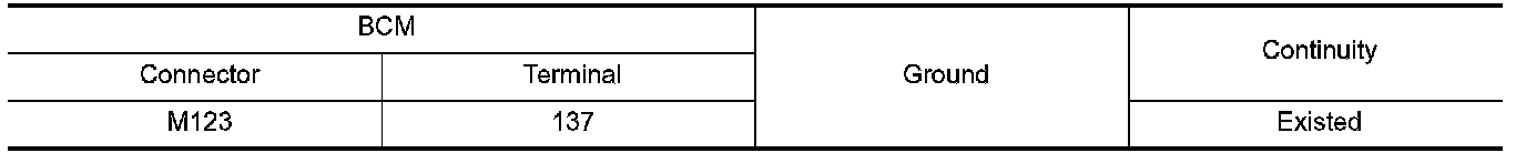 2.Check continuity between BCM harness connector and ground.