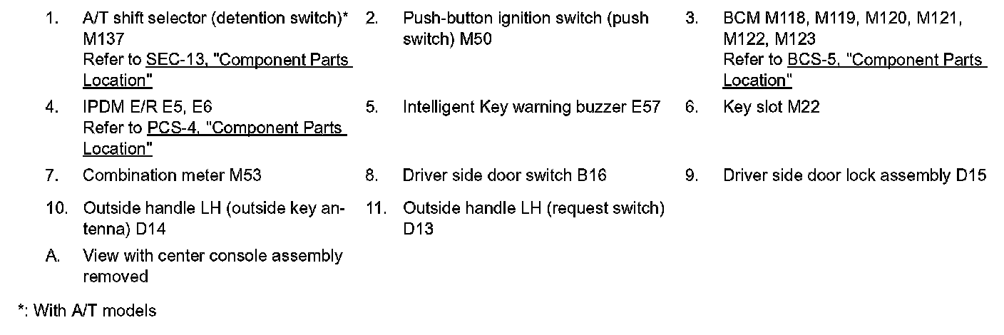 DOOR LOCK FUNCTION : Component Parts Location