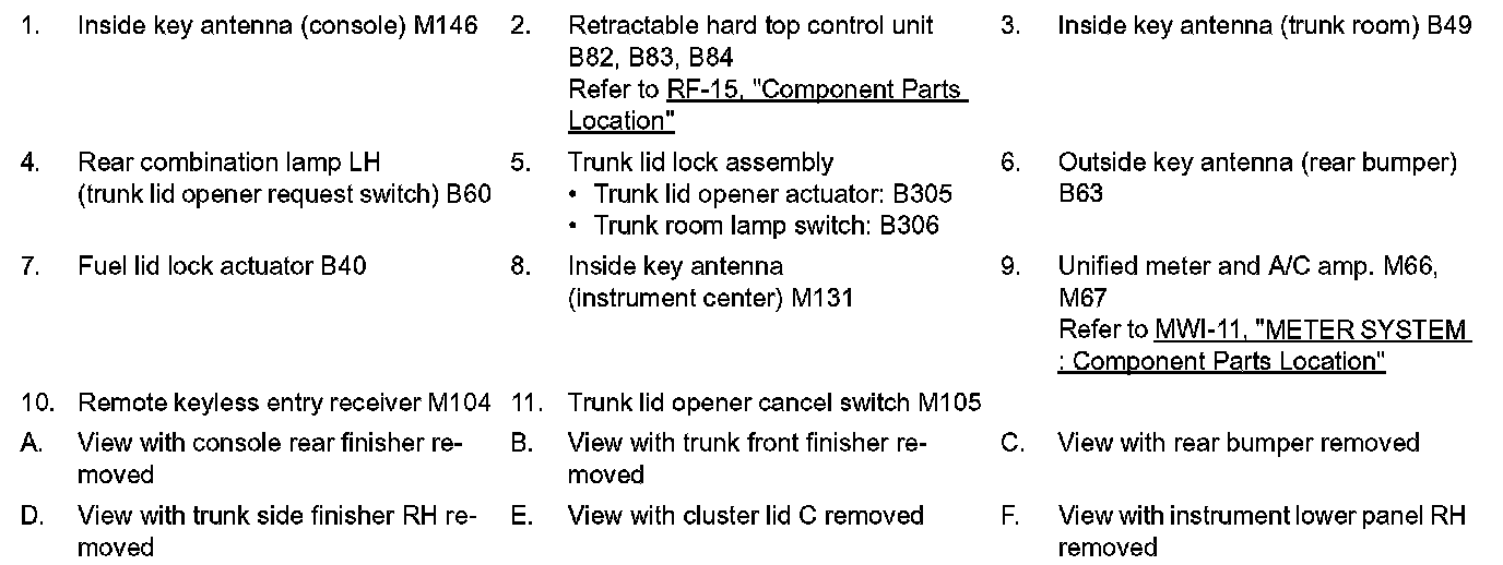 REMOTE KEYLESS ENTRY FUNCTION : Component Parts Location