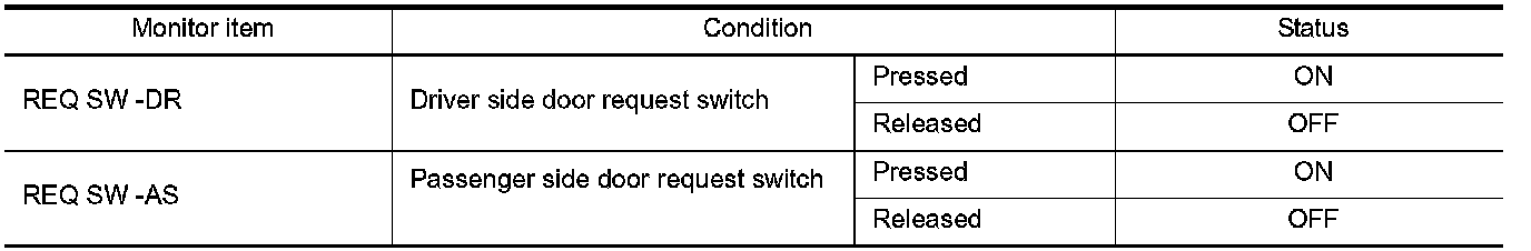 Check ("REQ SW -DR" or "REQ SW -AS") in BCM "Data Monitor" mode using CONSULT-III.