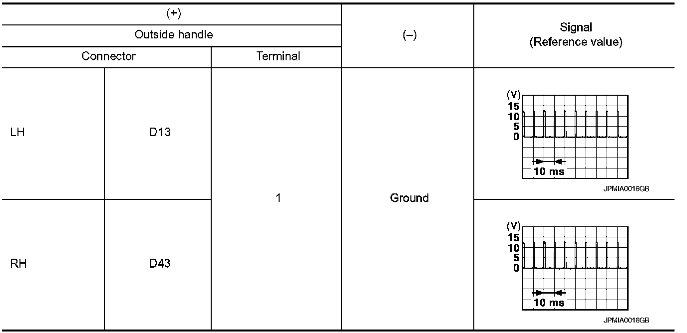 3.Check signal between malfunctioning outside handle harness connector and ground using oscilloscope.