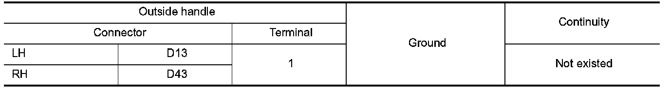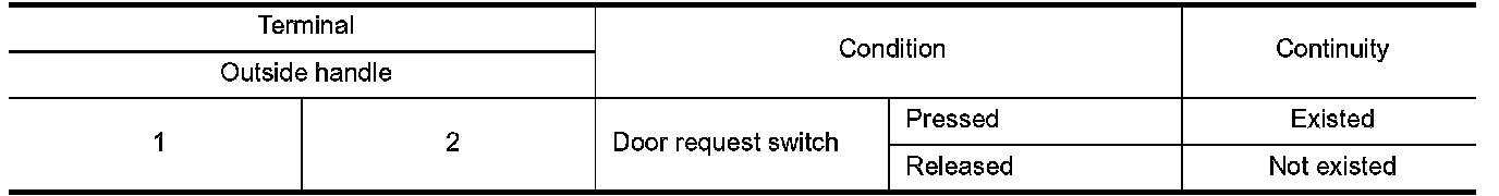 3.Check continuity between malfunctioning outside handle terminals.