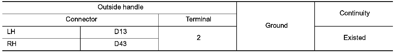 3.Check continuity between malfunctioning outside handle harness connector and ground.