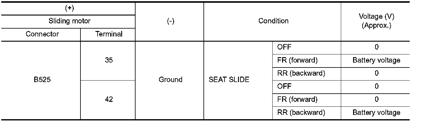 5.Check voltage between sliding motor harness connector and ground.