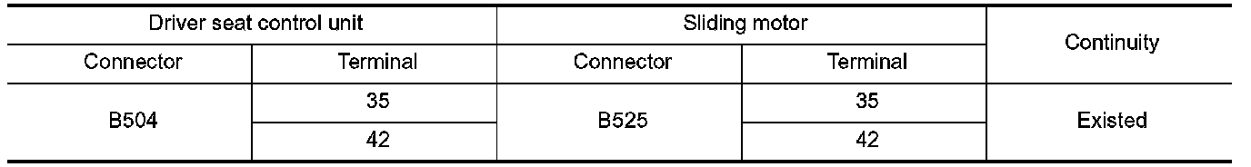 3.Check continuity between driver seat control unit harness connector and sliding motor harness connector.