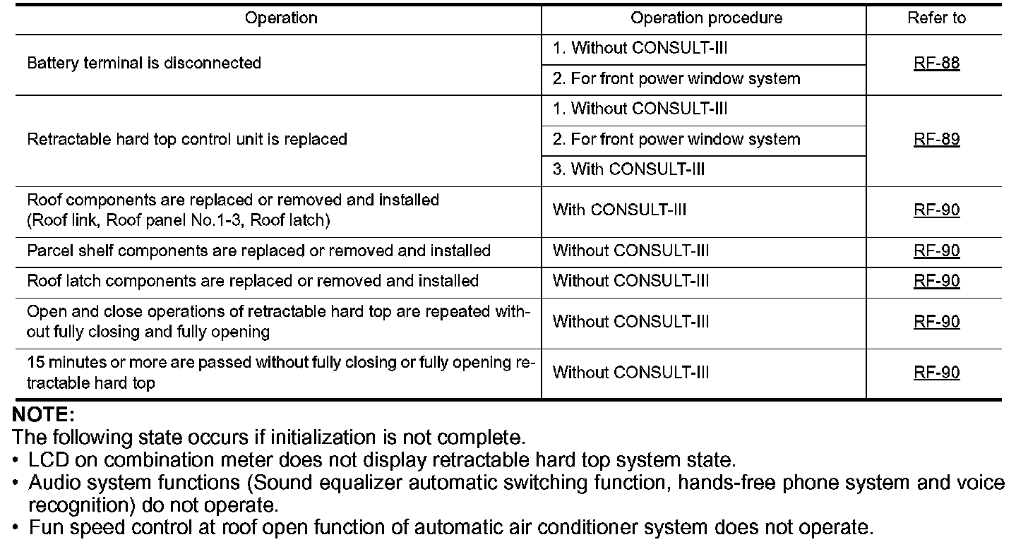 There are 2 kinds of operations in initialization of retractable hard top system.