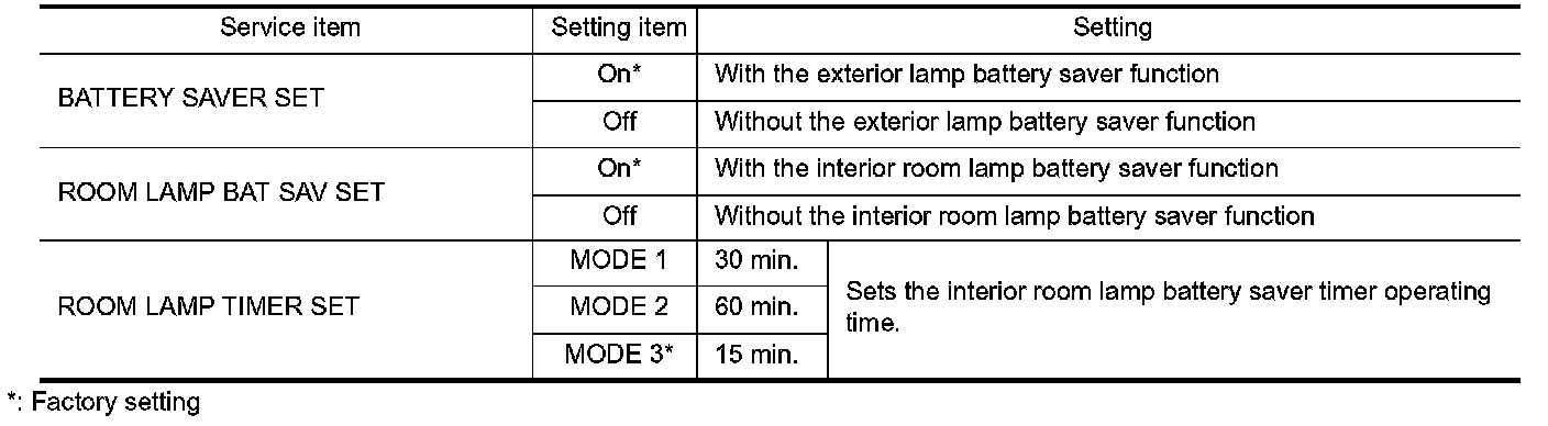BATTERY SAVER : CONSULT-III Function (BCM - BATTERY SAVER)