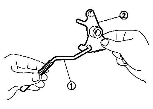 Check that the needle bearing (2) is securely positioned. If the needle bearing position is misaligned, adjust it to the specified position.