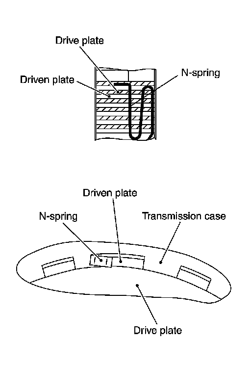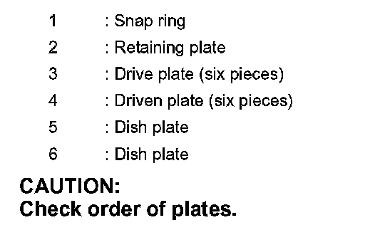 14.Install reverse brake drive plates, driven plates, dish plates and retaining plate in transmission case.