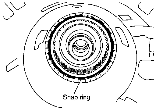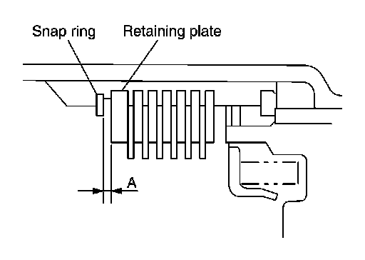 18.Measure clearance between retaining plate and snap ring. If not within specified clearance, select proper retaining plate.