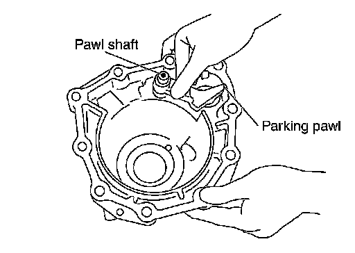23.Install parking pawl (with return spring) and pawl shaft to rear extension.