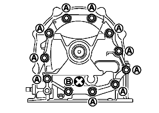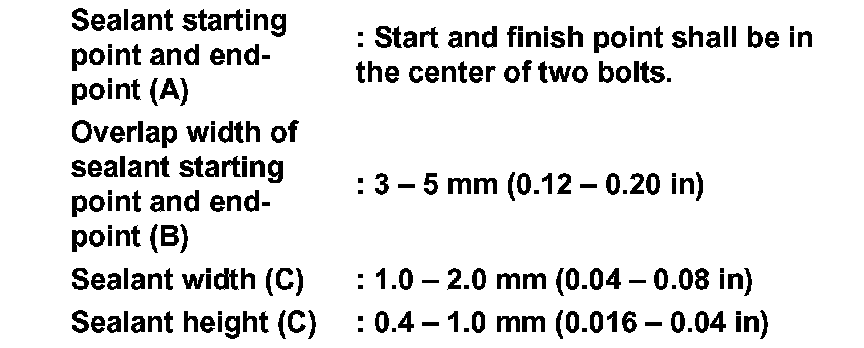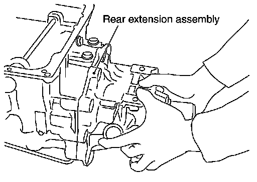 30.Apply recommended sealant (Genuine Anaerobic Liquid Gasket or equivalent. Recommended Chemical Products and Sealants.) to rear extension assembly as shown in the figure.