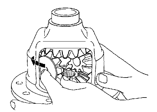 6.Measure side gear end play. If necessary, select the appropriate side gear thrust washers.