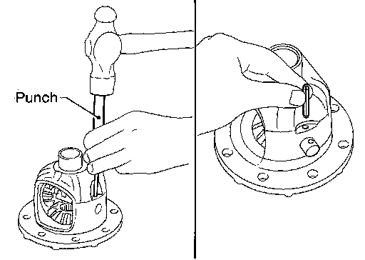 7.Drive a lock pin into pinion mate shaft, using a punch.