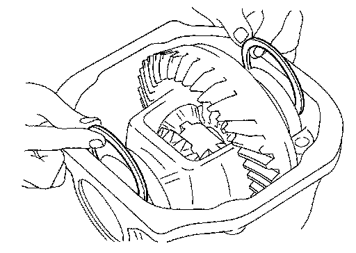 2.Install side gear thrust washers with the same thickness as the ones installed prior to disassembly or reinstall the old ones on the side gears.