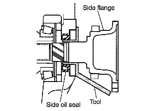 b.After the side flanges is inserted and the serrated part of side gear has engaged the serrated part of flange, remove the protector.