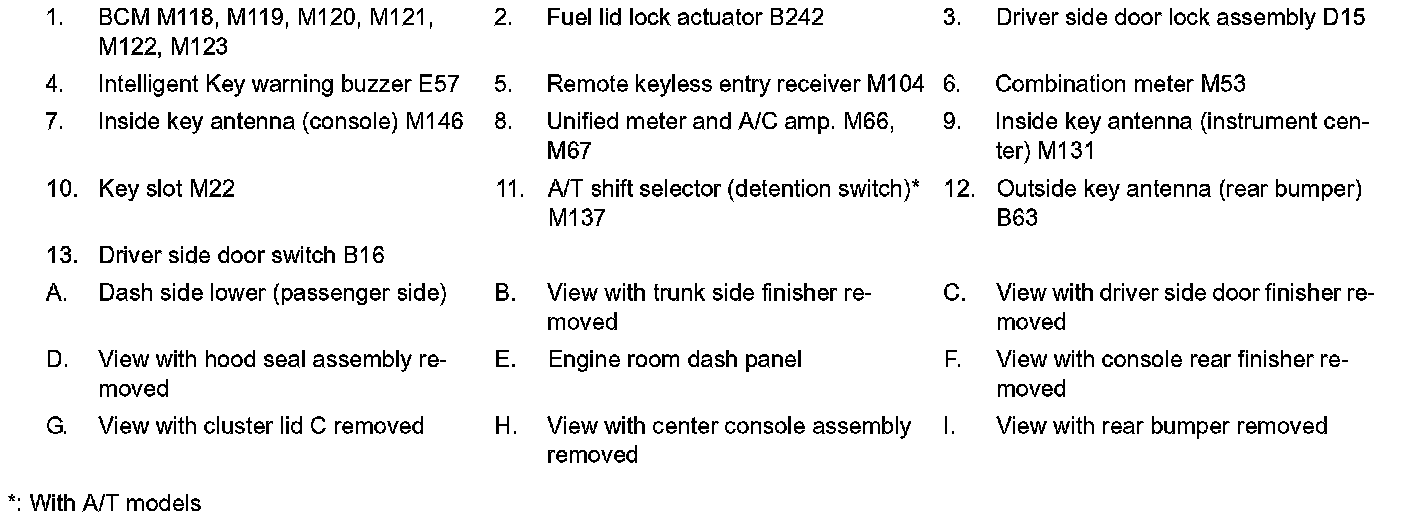 REMOTE KEYLESS ENTRY FUNCTION : Component Parts Location