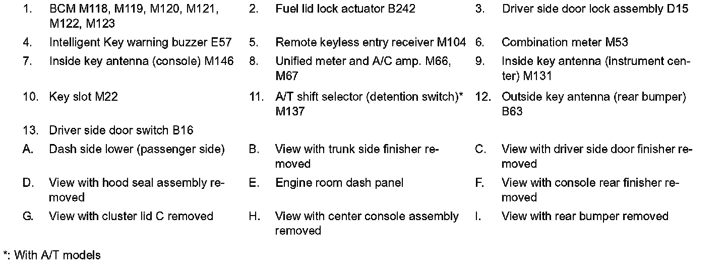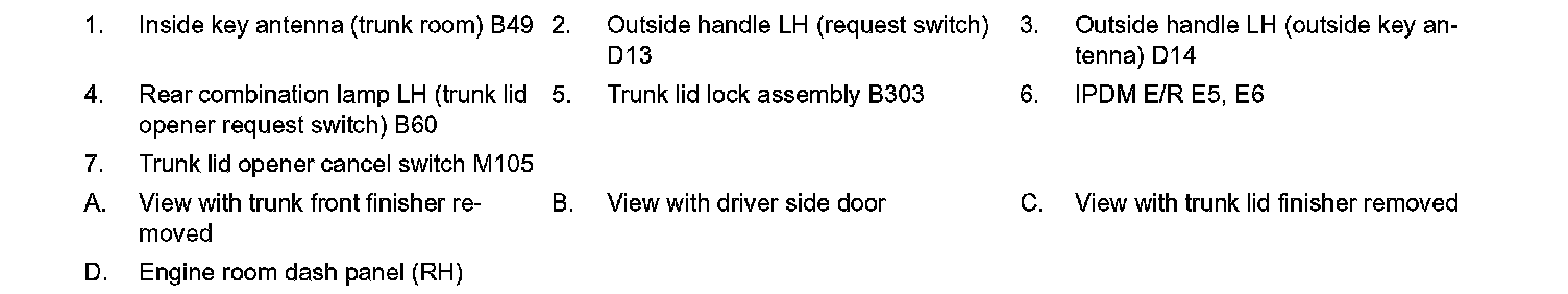 TRUNK OPEN FUNCTION : Component Parts Location