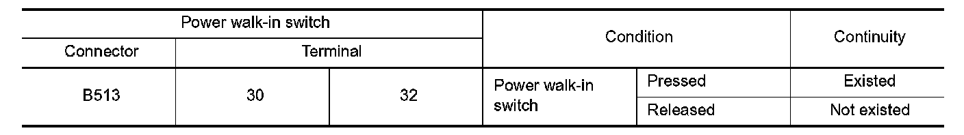 2.Check continuity between driver seat control unit harness connector and power walk-in switch harness connector.