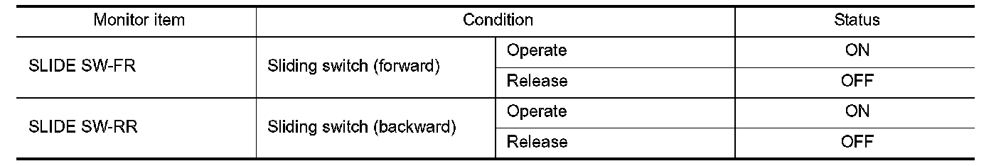 3.Check sliding switch signal under the following conditions.