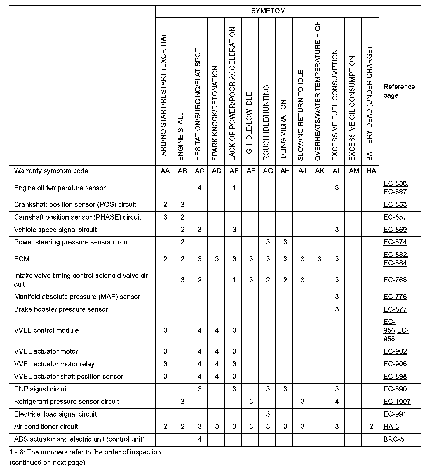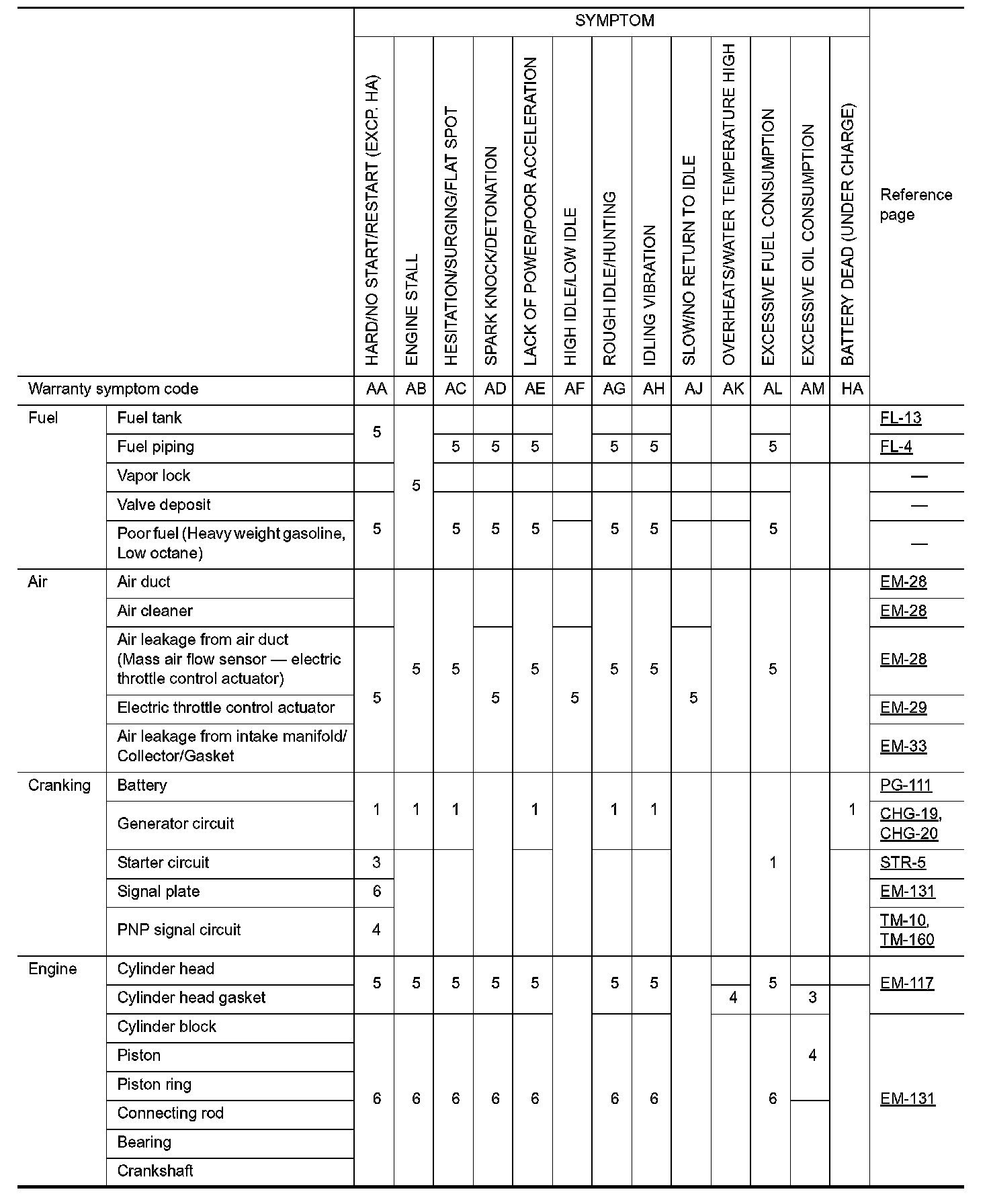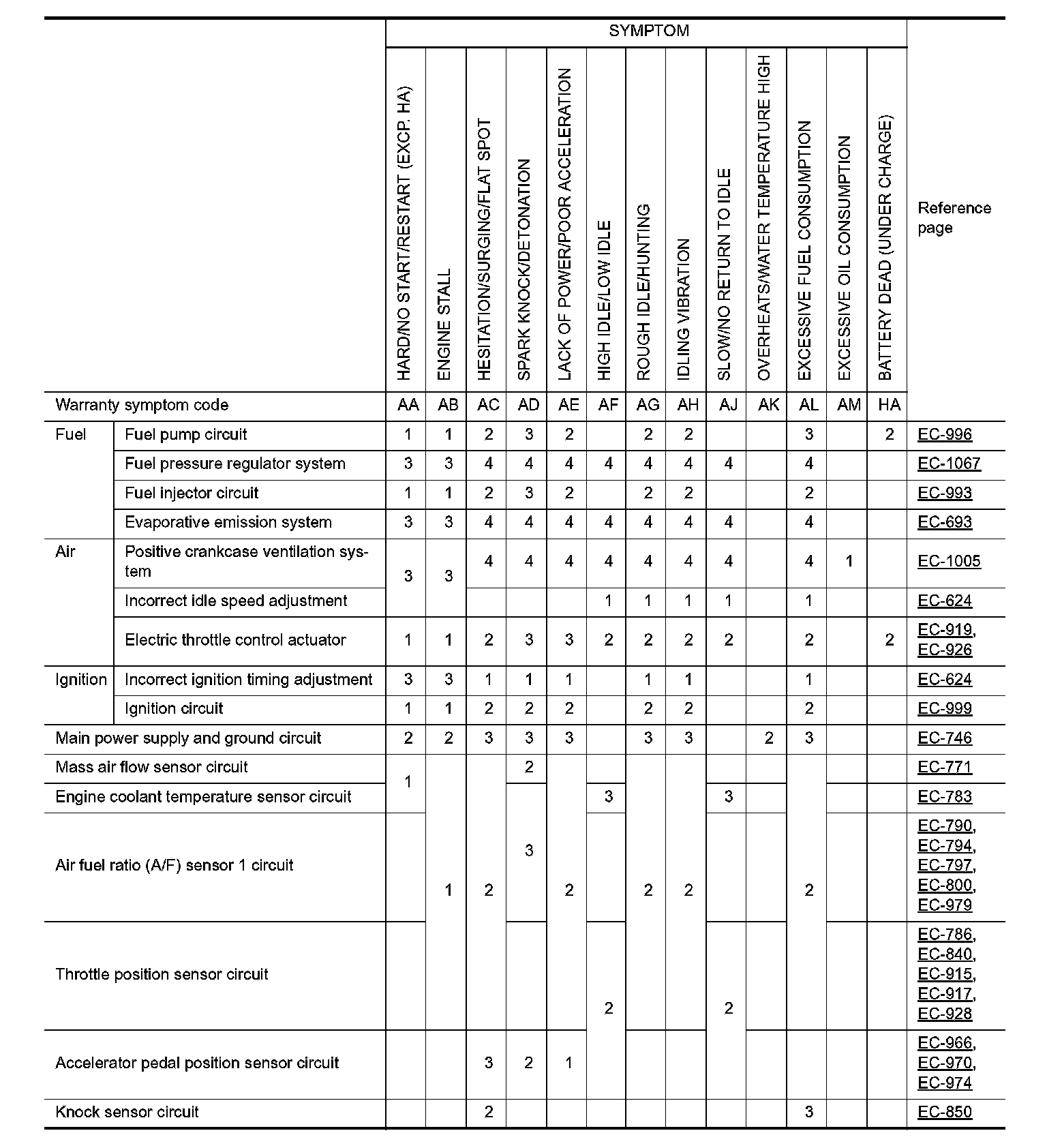 ENGINE CONTROL SYSTEM SYMPTOMS