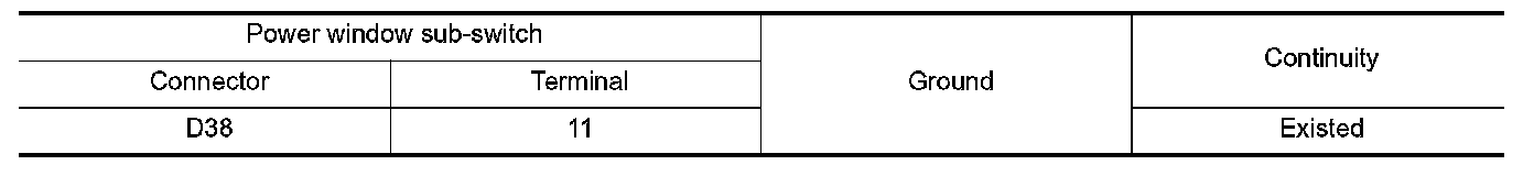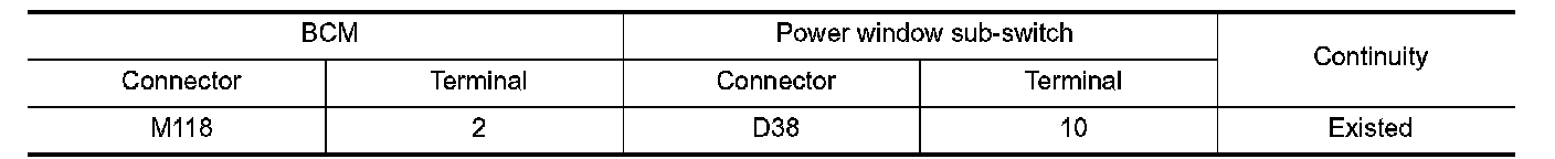 3.Check continuity between BCM harness connector and power window sub-switch harness connector.