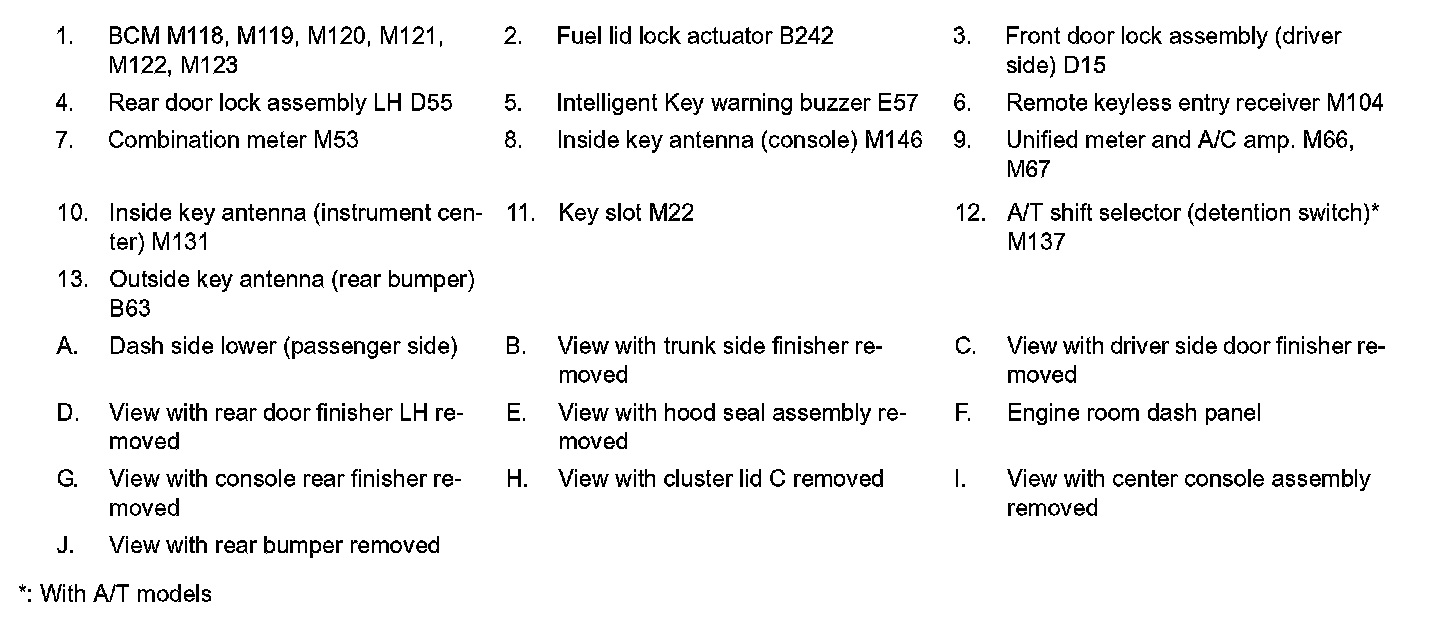 REMOTE KEYLESS ENTRY FUNCTION : Component Parts Location
