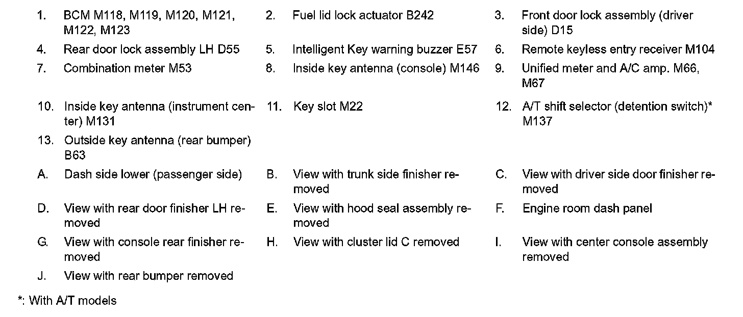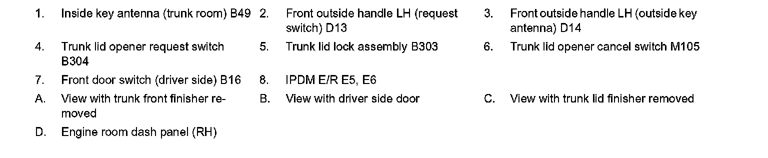 TRUNK OPEN FUNCTION : Component Parts Location