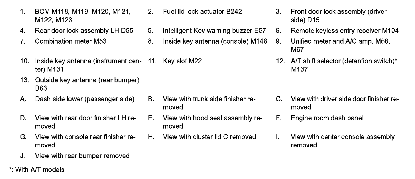 WARNING FUNCTION : Component Parts Location